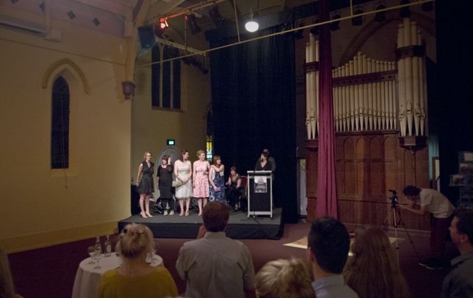 The audience was then treated to the spectacle of works from the ‘Darlings’ being auctioned off by a professional auctioneer—bids were slow however the activity highlighted one approach to the many ways in which art is presented for appreciation and acquisition.