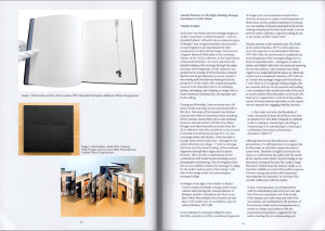 During my fellowship, I have reviewed over 100 artists’ books and many artists’ statements held in the ALA. The scope of this research was limited to particular works of Australian artists including Peter Lyssiotis, Gracia Haby and Louise Jennison. However selected works by British artist Helen Douglas and other international artists from the ALA collection were also considered in my research to include an international perspective. As I am a montage maker and thinker, I have decided to include some artists’ books that–although by the artist’s definition are collage– I ‘read’ as montage. My focus is on the visual ‘reading’ of the combined fragments through their edges and the spaces between. There are also considerations for the combination with mixed media including sound, photography and drawing.